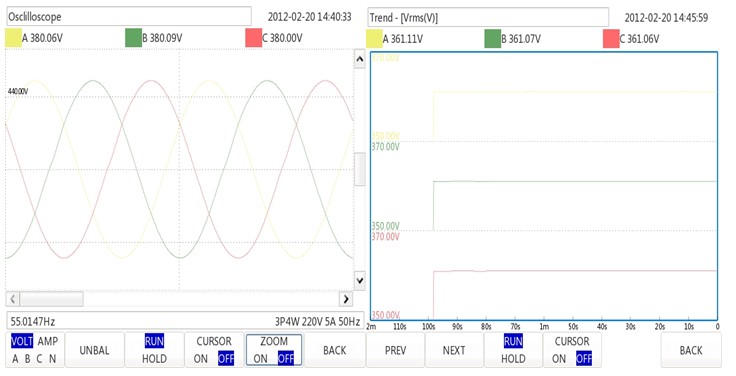 实时采集各个测量点数据和记录,显示配电系统运行的各项参数,可显示下列参数: